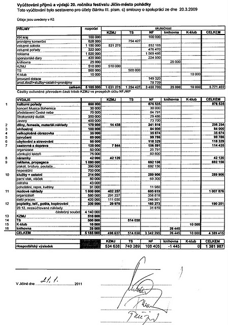 (JPG, 110 kB) | Vyúčtování příjmů a výdajů 20. ročníku (2010) festivalu JMP |