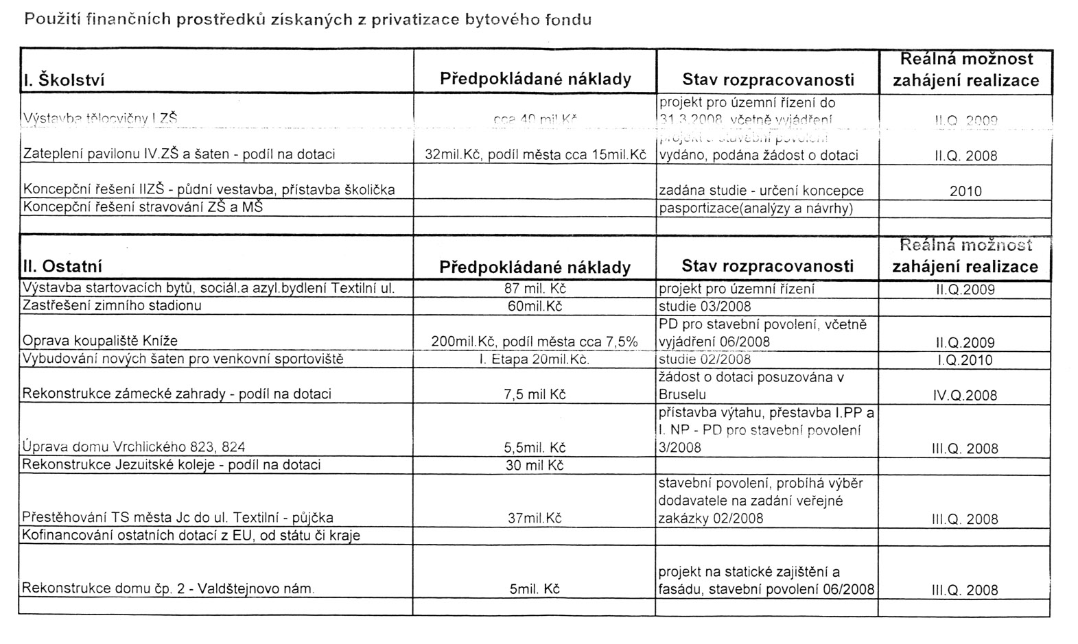 Zde se podívejte na navrhované rozdělení peněz do rozpočtu na rok 2008, zřejmě jediných peněz, které město může získat, aniž by něco svého dalšího prodalo. (Pracovní materiál připravený pro zastupitele.) |