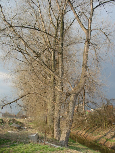 Obr. 1 Topolová řada u Cidliny. Pohled přímo z břehu Cidliny. 03/04/02