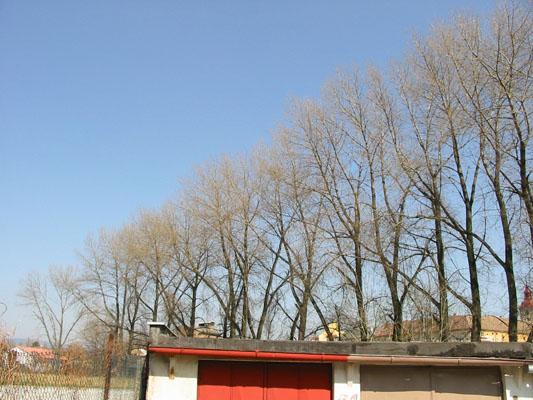 Obr. 2 Topolová řada u Cidliny. Pohled od garáží. 03/04/02