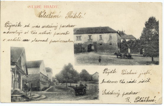 Pohlednice Starých Hradů, kterou vydal kolem roku 1900 Ervín Malý.