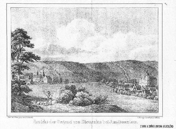 Pískač: pohled na okolí Dětenic. Původní litografie tištěná u Karla Henniga (1974–1862 v Praze).