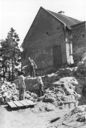 Práce na gotické části zámku v srpnu 1975.Foto J. Jirásek