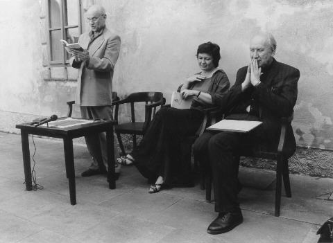 Hana Kofránková a Bořivoj Navrátil četli ukázky z jeho knihy Byl jsem nablízku, od pana probošta jsme se dozvěděli mnohé o vzniku tohoto díla, laděného poněkud do jiné tóniny, než byla kniha Celý život jsem se učil, a přece jsem propadl, uvedená ve Starých Hradech o loňských prázdninách.