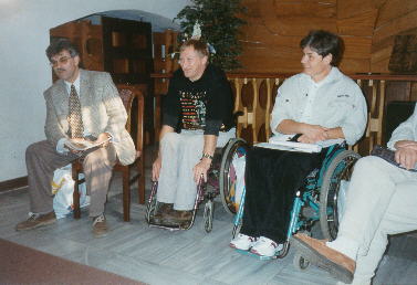 Během prohlídky této pěkné výstavy se postupně doplnila skupinka výborných lidí, kteří se po vernisáži výstavy pana Švorce sešli v krásném zámeckém prostředí, v oddávacích prostorách Starých Hradů. Dalšími milými hosty byli atleti-vozíčkáři Ing. Věra Jirásková a Štefan Danko, účastníci letošní jubilejní paralympiády v Atlantě, a jejich doprovod, trenér Libor Šnajder a paní doktorka Alena Kalináčová z nedaleké Železnice. Jejich vypravováním jsme se přenesli za moře do úplně jiného a neznámého sportovního prostředí. Dozvěděli jsme se, že podmínky pro pobyt, trénování, ale i samotné závodění nebyly zrovna ty nejlepší a nejregulérnější a v porovnání s těmi minulými v Barceloně se nemohly srovnávat vůbec. Daleko horší bylo nejen ubytování, ale i stravování. Organizace se tam pořadatelům vymkla z rukou úplně, zmatky byly s dopravou, nebylo čím trénovat, prostě: jiný kraj, jiný mrav. O to více naše sportovce a jejich výkony obdivujeme.