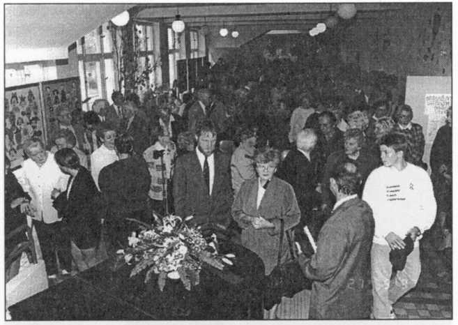 Účastníci oslav v hale školy. Foto: Jiří Ullrich.