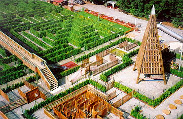 Na jaře roku 1992 rodina Frenzelova postavila svépomocí během pouhých tří měsíců bludiště, které je v současné době největší v Německu. Na ploše 51x51 m (2601 m2) bylo položeno 3000 m obrubníků, postaveno 700 plotových sloupků, nataženo 1300 m drátěného pletiva, rozprostřeno 3200 stále zelených konifer. Nejkratší cesta k cíli uprostřed keřového bludiště je asi 350 m dlouhá a celková síť cestiček je 1,56 km dlouhá. V bludišti neexistují slepé uličky, za to však 30 720 různých možností dostat se k cíli, který je uprostřed. Zde použitý systém bludiště je jedinečný v všichni si lámají nad tím hlavu. Denně k nám přichází mnoho návštěvníků a rodiny doslova soutěží mezi sebou. Razítko uprostřed bludiště je pro všechny hezkou památkou. Od 1994 do 1995 následovala výstavba sousedního dobrodružného bludiště. Kdo se teď dostane do středu bludiště ze křoví, může přes 30 m dlouhý dřevěný most odstartovat do dalšího dobrodružství. Do cest zabudované překážky vytvářejí labyrint, který je snad na celém světě jedinečný. Můžete na příklad balancovat přes vodní nádrž s překážkami. Nejrůznější mosty znesnadňují hledání východu. Další částí labyrintu můžete prolézat nebo provléci se palisádovým labyrintem. Největší atrakcí však asi budou dvě obrovské klouzačky, z nichž jedna může být použita jako východ. Celkem 30 překážek můžete překonat na ploše 30 x 51 m. Nezapomnělo se však ani na návštěvníky, kteří nejsou tak sportovní. Existuje i trasa bez překážek, která končí otáčivými dveřmi, které vedou na svobodu.