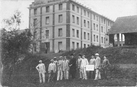 "Poštovní spořitelnou obdržel jsem vyrovnání svého účtu, a poněvadž doufám, že Jste byl s mojí moukou spokojen, těším se na další ctěné objednávky! S veškerou úctou Boh. Mareček", tak zní text na rubu pohlednice (nahoře, zapůjčeno ze sbírky Josefa Krenna), kterou Bohuslav Mareček odeslal 15. dubna 1913 pekaři Josefu Deylovi do Vysokého Veselí. Na této pohlednici, kterou Mareček vydal vlastním nákladem, je zachycena jeho vila i s evangelickou modlitebnou, cihelna a parní mlýn, který se nachází zcela vpravo. Na snímku ovšem není původní kruhová cihelna, ale nová, která byla vystavěna po požáru v roce 1900. V místech, kde se pro kruhovku dobývala hlína (v okolí moravčické cesty), byly nalezeny v hloubce 6 m zbytky klů a dalších kostí. Vyskytly se zde i popelnice žárových polí a našla se i keramika doby hradištní. Zbývající dvě pohlednice (vpravo) ze sbírky Karla Čermáka pak v detailu přibližují parní mlýn (rok 1914) a vilu s evangelickou modlitebnou. Ve skupince dělníků, kteří se nechali fotografovat před budovou mlýna, stojí uprostřed Bohuslav Mareček.