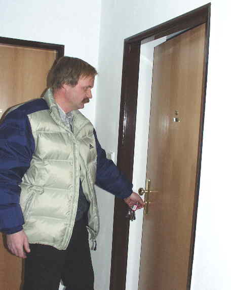 DVANÁCT NOVÝCH BYTŮ Již druhý bytový dům v Barákově ulici v Jičíně dokončila v těchto dnech stavební firma Staving Valdice. V objektu je umístěn jeden nebytový prostor a dvanáct bytů, které byly včera slavnostně předány do výlučného vlastnictví novým majitelům. Podle jednatele společnosti Josefa Martince jde o suverénně nejlacinější výstavbu bytů do osobního vlastnictví na našem okrese. "Cena za metr čtverečný v tomto novém domě je 14900 korun, což je opravdu velmi slušné. Všechny byty už máme prodané, a i proto již dnes plánujeme výstavbu dalšího objektu taktéž v tomto prostranství," uvedl Martinec. Výstavbu by měl Staving Valdice zahájit již v březnu, čímž by záměry společnosti v lokalitě neměly skončit, protože v dohledné době zde plánuje postavit ještě jeden, v pořadí již čtvrtý dům. "Všechny byty se staví podle představ budoucích majitelů, tedy na základě individuálních požadavků. Navíc jsme ochotni těmto lidem v případě potřeby pomoci i se získáním stavebního nebo hypotečního úvěru," dodává Martinec. Při předávání jednoho z bytů ředitel společnosti Staving Valdice Bohumil Brož.