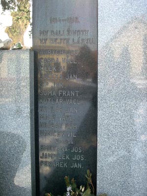 | Fotografie: | Nové (17/02/2003): Detail (na této stránce), celek, deska s nápisem a jmény. Archiv: pomník (bez datace), pomník (bez datace), celek (26/03/1999). |