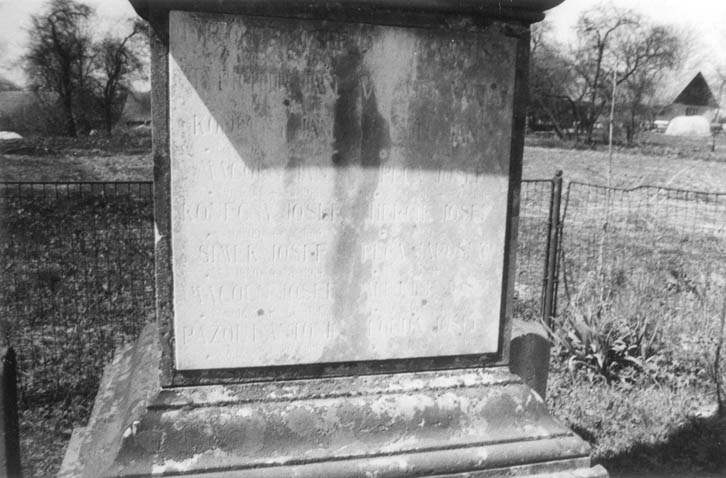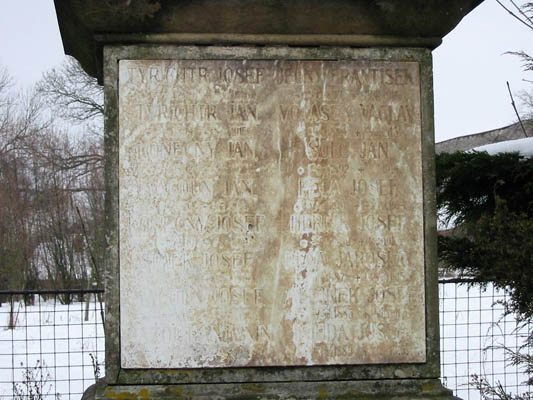 | Fotografie: | Nové (15/02/2003): Detail (na této stránce), celek, jména, nápis vpředu, nápis nahoře, nápis vzadu, detail provedení a nasazení orlice. Archiv: bez zeleně (1987), jména (1987), současný stav (25/08/1998). |