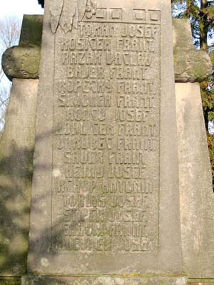 | Fotografie: | Nové (17/02/2003): Detail (na této stránce), celek, jména nahoře, jména dole. Archiv: detail (08/1997), detail (bez datace). |
