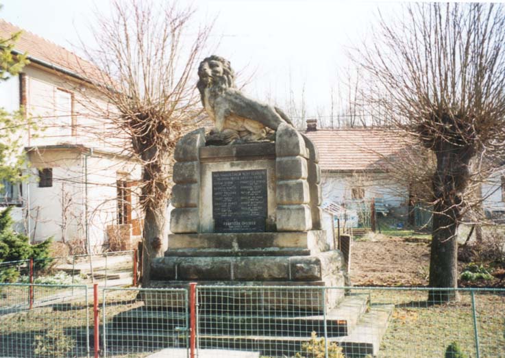 | Fotografie: | Nové (17/02/2003): Detail (na této stránce), celek, deska s nápisem. Archiv: detail (26/03/1999), detail (80. léta?). |