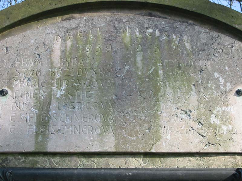 | Fotografie: | Nové (17/02/2003): pomník, detail desky s nápisem (na této straně). Archiv: deska a celý pomník (07/05/1999), deska a celý pomník (1990?). |