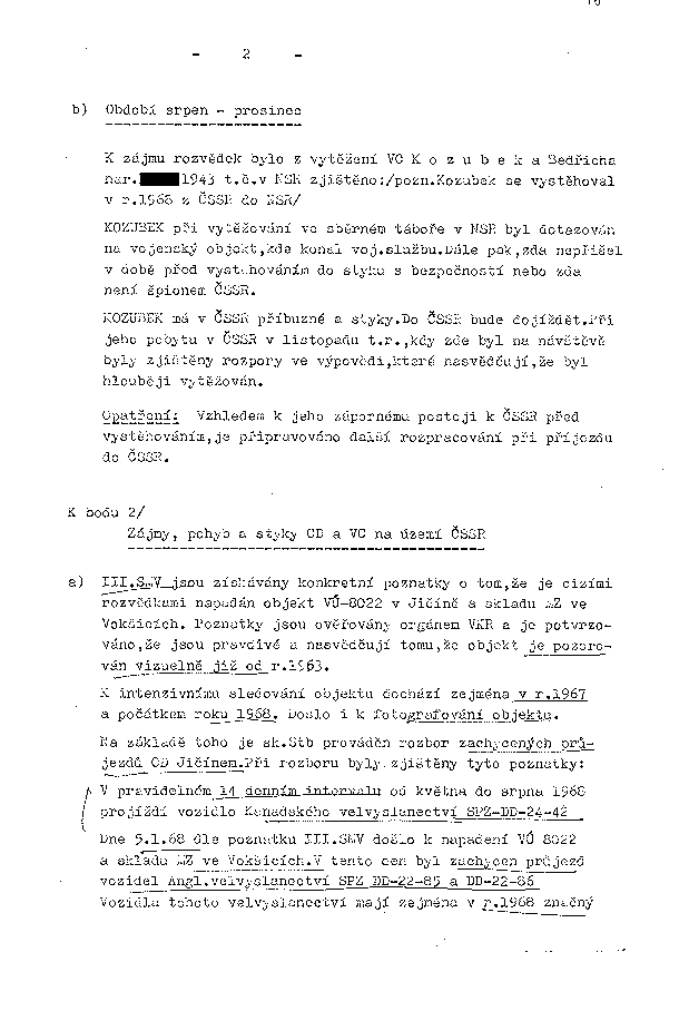K zájmu rozvědek bylo z vytěžení VC Kozubeka Bedřicha nar.XXXX.1943 t.č. v NSR zjištěno: /pozn. Kozubek se vystěhoval v r.1968 z ČSSR do NSR/
