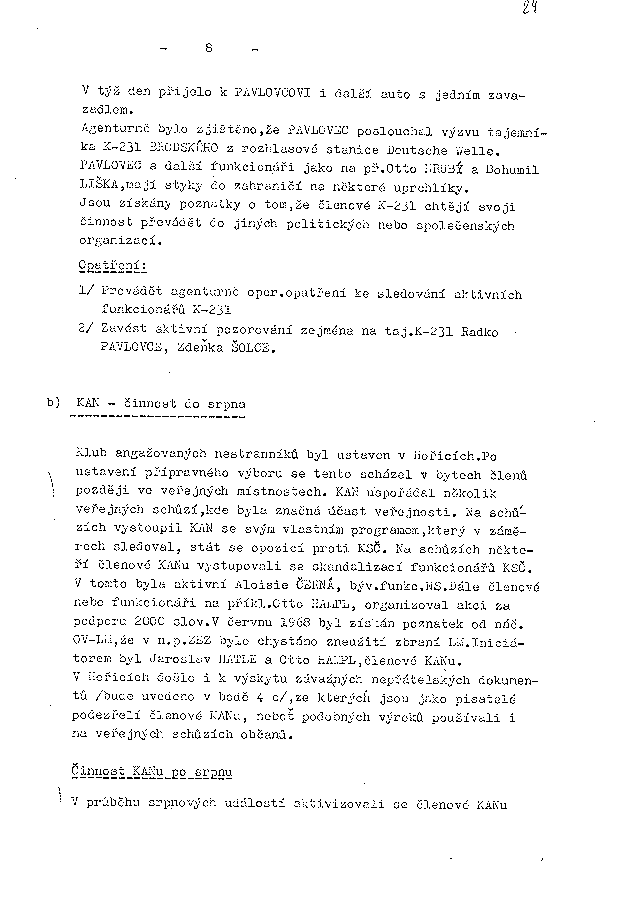 2/ Zavést aktivní pozorování zejména na taj.K-231 Radko PAVLOVCE, Zdeňka ŠOLCE.