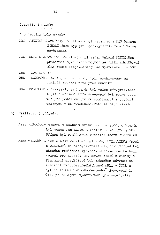 OS - PROFESOR - č. sv. 9213 ve kterém byl veden býv. prof. theologie František RYBA. Jmenovaný byl rozpracován pro podezření, že má součinnost s osobami vedenými v OS "PROGRAM". Toto se neprokázalo.
