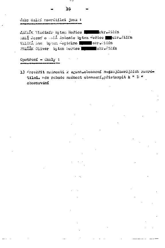 Plán činnosti skupiny Státní bezpečnosti Jičín pro rok 1970