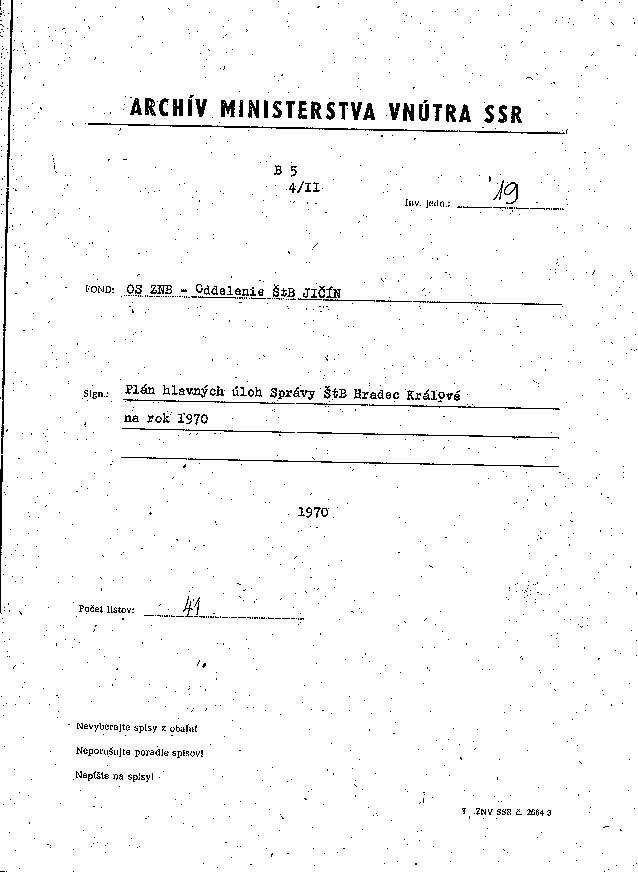 Sign.: Plán hlavných úloh Správy ŠtB Hradec Králové na rok 1970