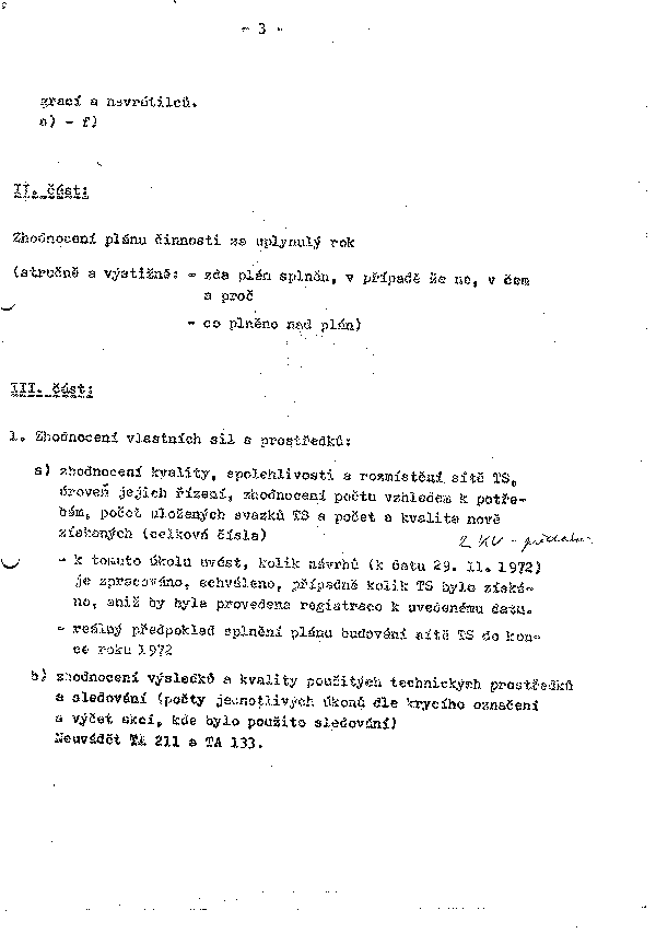 - reálný předpoklad splnění plánu budování sítě TS do konce roku 1972