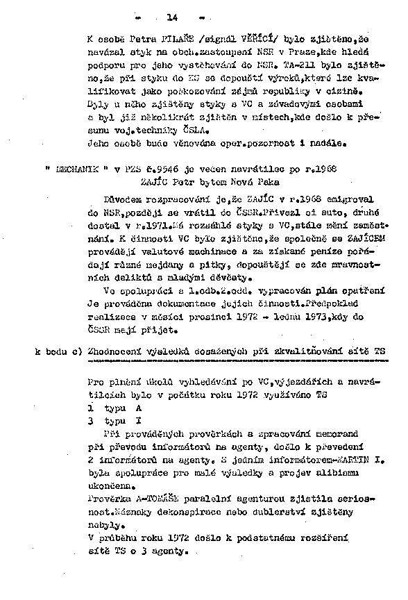 Byly u něho zjištěny styky s VC a závadovými osobami a byl již několikrát zjištěn v místech, kde došlo k přesunu voj.techniky ČSLA.