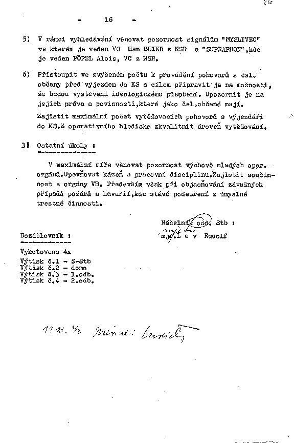 6) Přistoupit ve zvýšeném počtu k provádění pohovorů s čsl. občany před výjezdem do KS s cílem připravit je na možnosti, že budou vystaveni ideologickému působení. Upozornit je na jejich práva a povinnosti, které jako čsl. občané mají.