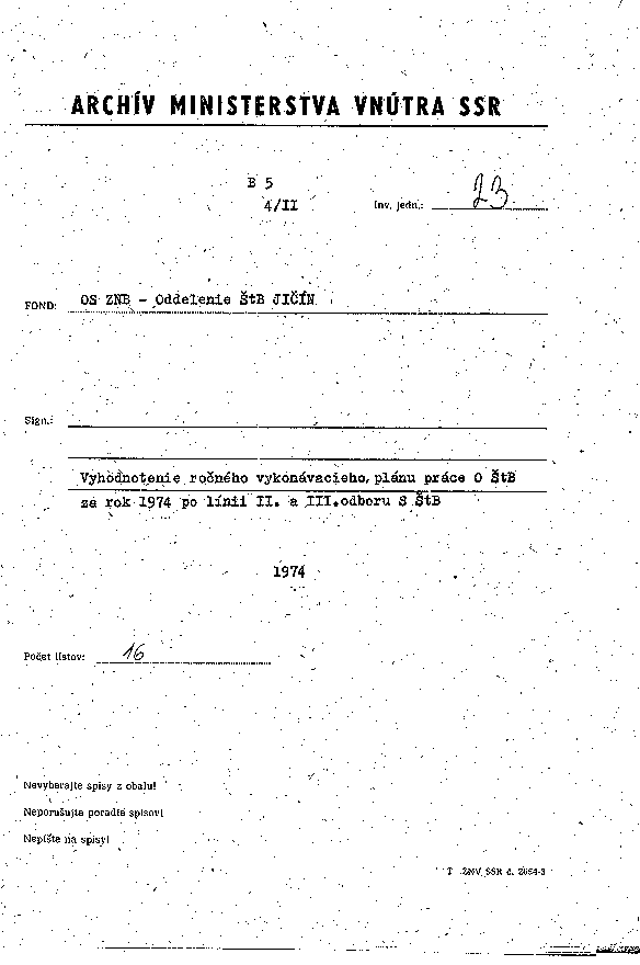 FOND: OS ZNB - Oddelenie ŠtB JIČÍN