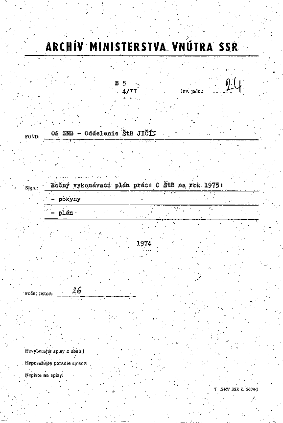 FOND: OS ZNB - Oddelenie ŠtB JIČÍN