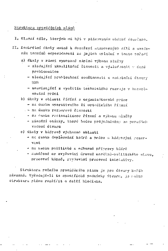 Struktura ročního prováděcího plánu je pro útvary S-Stb závazná. Vyžadují-li to specifické podmínky útvaru, je možno strukturu plánu rozšířit o další hlediska.