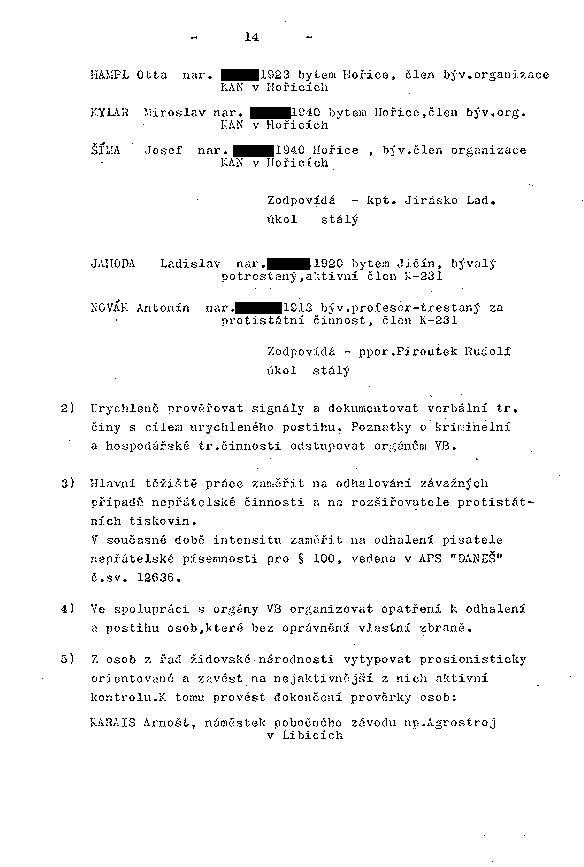 JAHODA Ladislav nar. XXXXX.1920 bytem Jičín, bývalý potrestaný, aktivní člen K-231