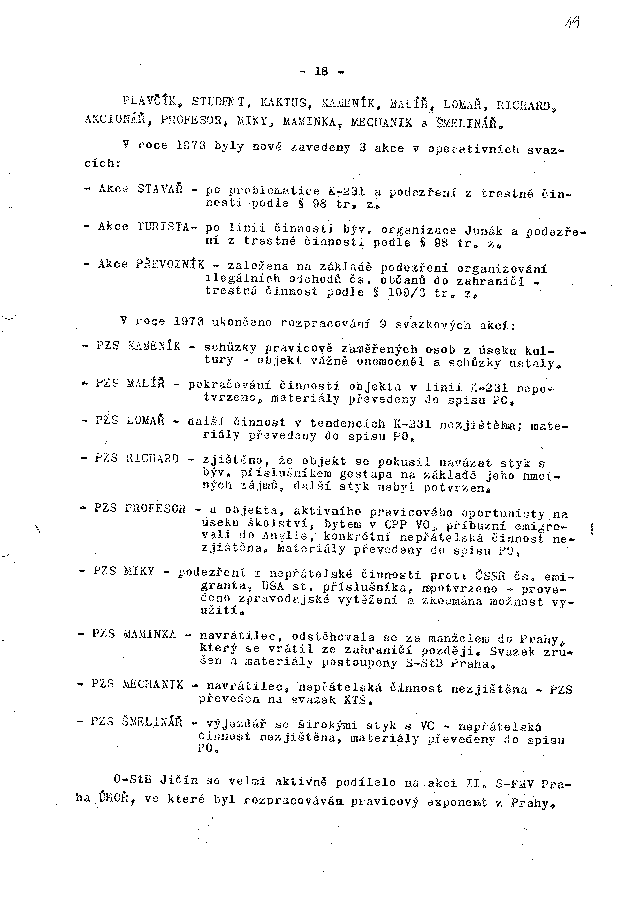 V roce 1973 ukončeno rozpracování 9 svazkových akcí: