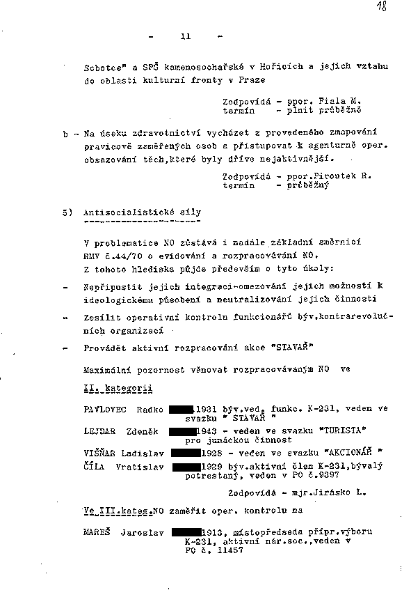 ČÍLA Vratislav XXXX.1929 býv.aktivní člen K-231, bývalý potrestaný, veden v PO č.9397