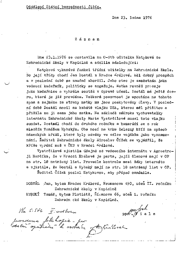 Odboj na Jičínsku – Archiv StB Jičín