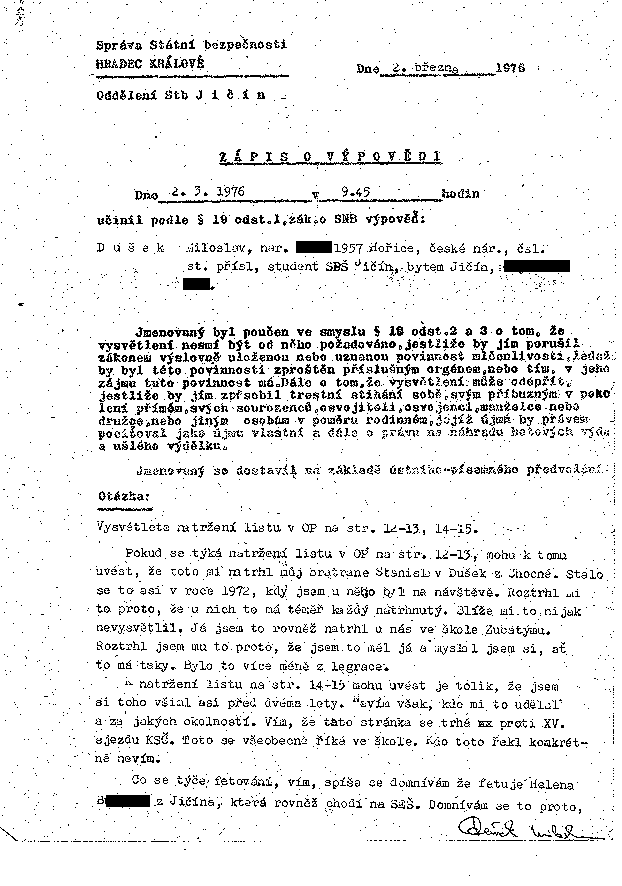 Předchozí list – Další list – Čistý text – Dokumenty – Návod – Vyhledávání – Archiv StB