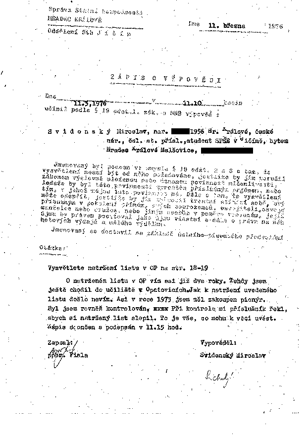 Předchozí list – Další list – Čistý text – Dokumenty – Návod – Vyhledávání – Archiv StB