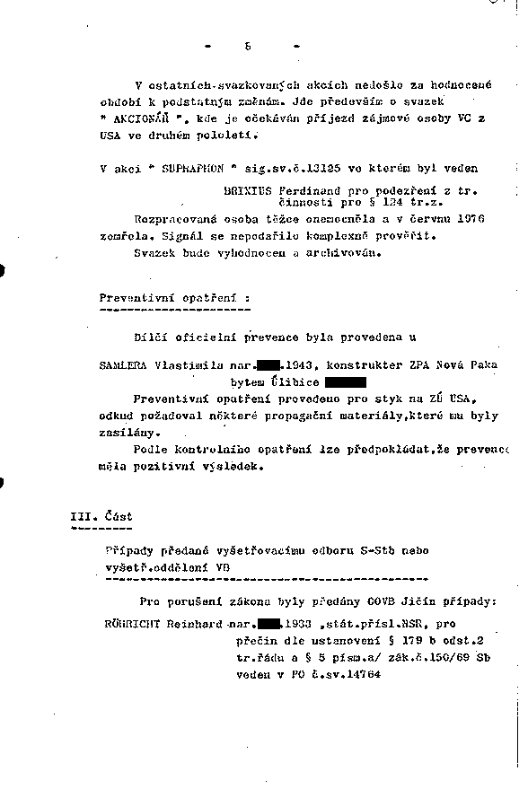 RÖHRICHT Reinhard nar. XXX.1933 , stát.přísl. NSR, pro přečin dle ustanovení § 179 b odst.2 tr.řádu a § 5 písm.a/ zák.č.150/69 Sb veden v PO č.sv. 14764