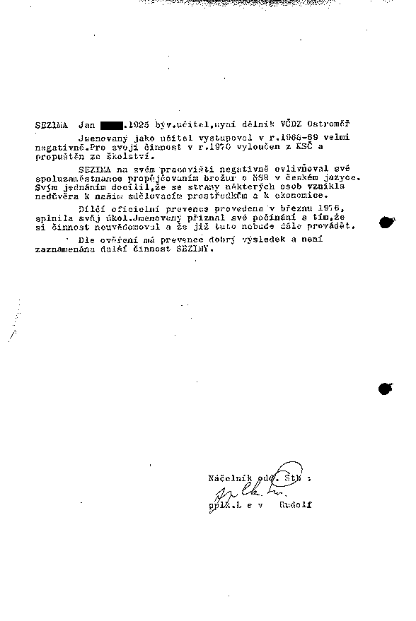 SEZIMA Jan XXXX.1925 býv.učitel, nyní dělník VČDZ Ostroměř