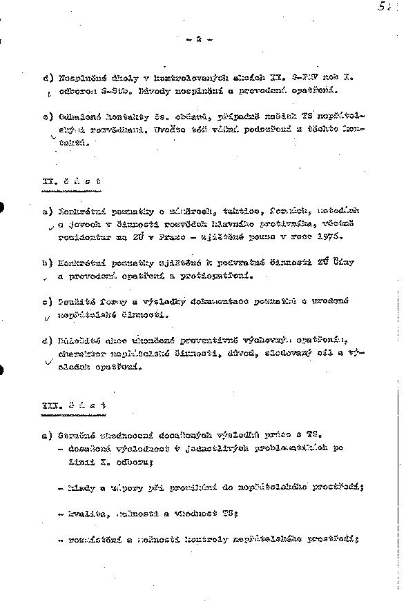a) Konkrétní poznatky o záměrech, taktice, formách, metodách a jevech v činnosti rozvědek hlavního protivníka, včetně rezidentur na ZÚ v Praze - zjištěné pouze v roce 1976.