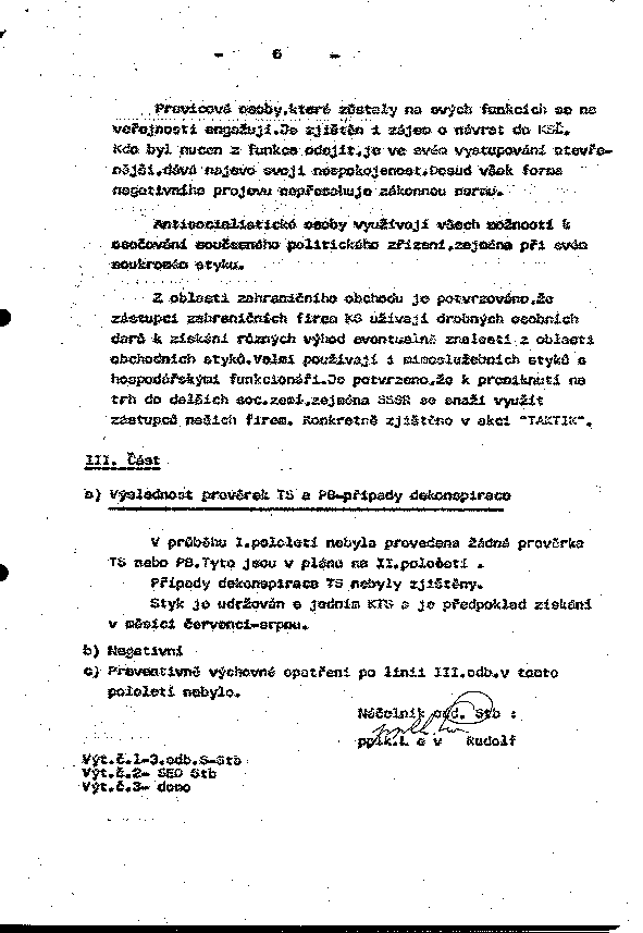 Zhodnocení pracovních výsledků za I. pololetí 1977 po linii III. odboru