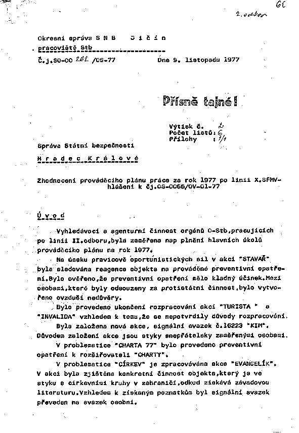 Zhodnocení prováděcího plánu práce za rok 1977 po linii X. SFMV