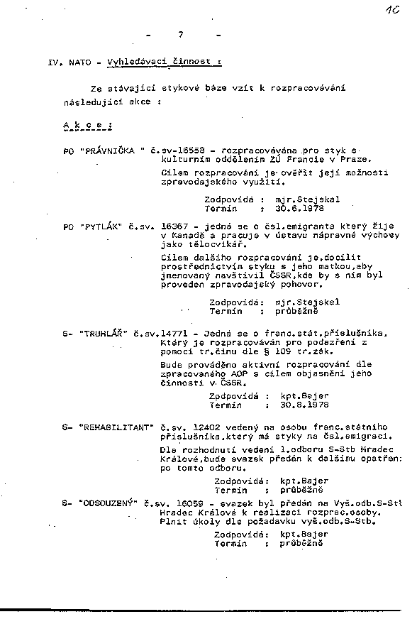 Plán práce pracoviště Stb Jičín po linii I. odboru na rok 1978