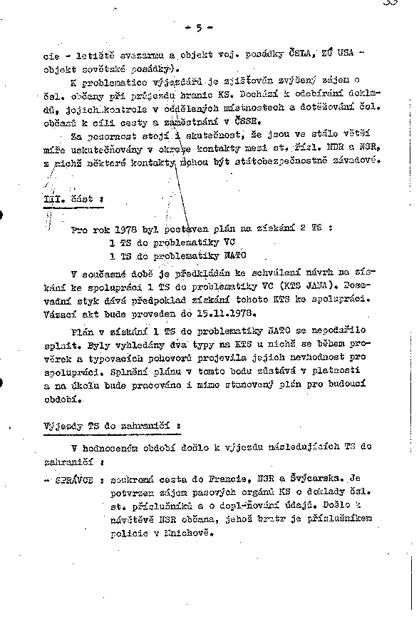 Zhodnocení plánu práce v r. 1978 po linii I. odboru S-StB