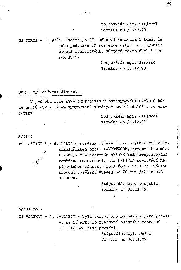 Plán práce pracoviště StB Jičín po linii I. odboru na rok 1979