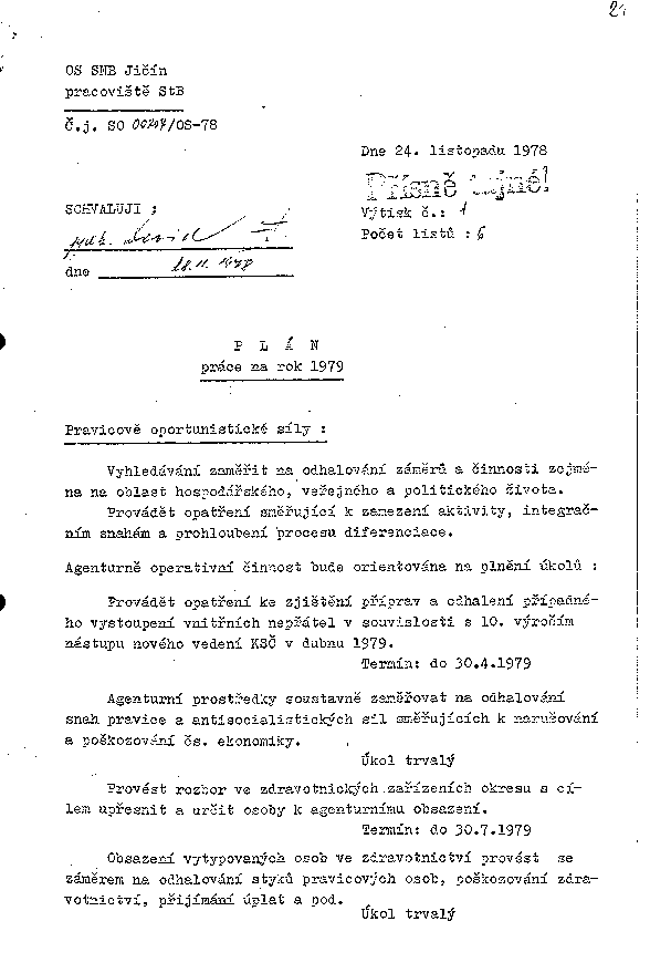 Plán práce na rok 1979 (II. a III. odbor)