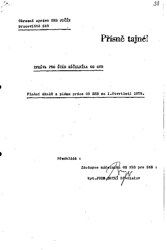 ZPRÁVA PRO ŠTÁB NÁČELNÍKA OS SNB