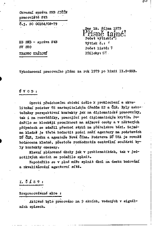 Vyhodnocení pracovního plánu za rok 1979 po linii II. S-StB
