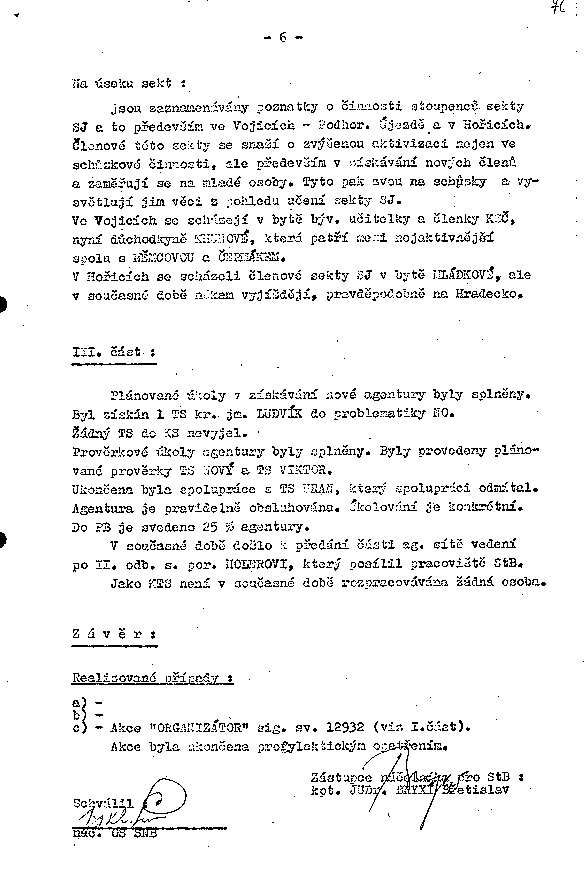 Plánované úkoly k získávaní nové agentury byly splněny. Byl získán 1 TS kr. jm. LUDVÍK do problematiky NO.