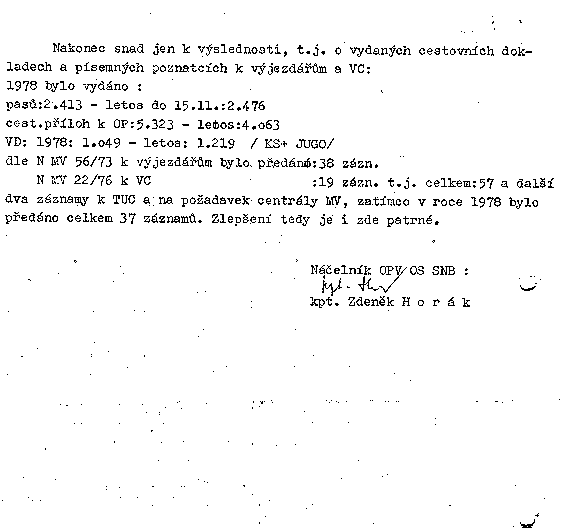Nakonec snad jen k výslednosti, t.j. o vydaných cestovních dokladech a písemných poznatcích k výjezdářům a VC: