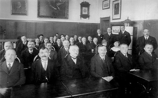 Na druhém je zasedání obecní rady v zasedací síni okresního úřadu (v dnešní výstavní síni zdravotního střediska) s představenstvem městské spořitelny a představiteli některých politických stran. O identifikaci jednotlivých osob se rovněž snažíme, budeme vděčni za Vaše informace.